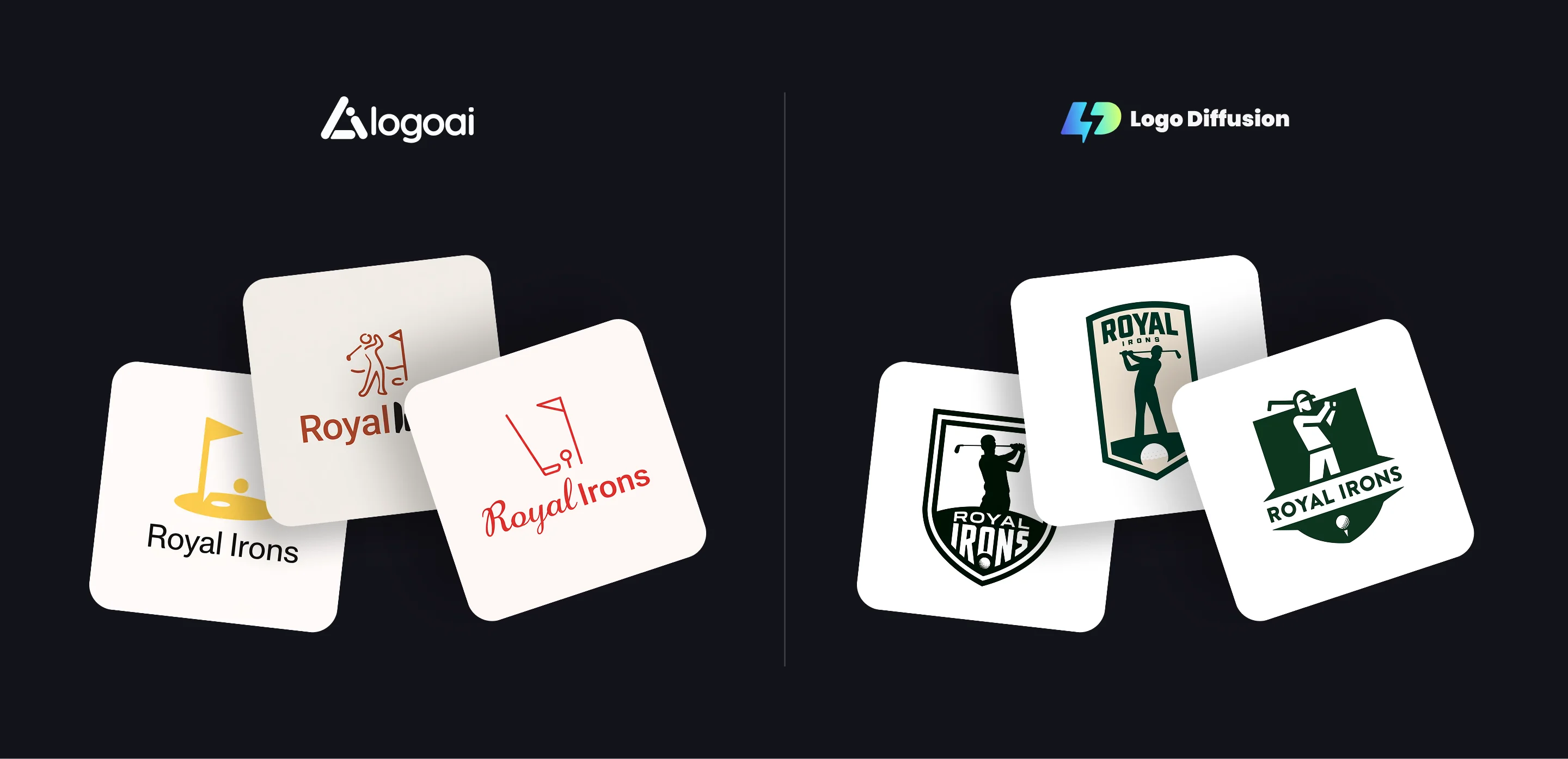 To keep the comparison fair and consistent, we used the same logo brief and prompt across both AI platforms. Each tool was asked to generate a logo for a fictional golf team called “Royal Irons”, with no additional post-editing or manual cleanup. This approach helps highlight how each AI interprets the same idea, design constraints, and brand intent. The results below show the raw outputs from each platform, allowing you to compare differences in style, structure, simplicity, and overall logo readiness.